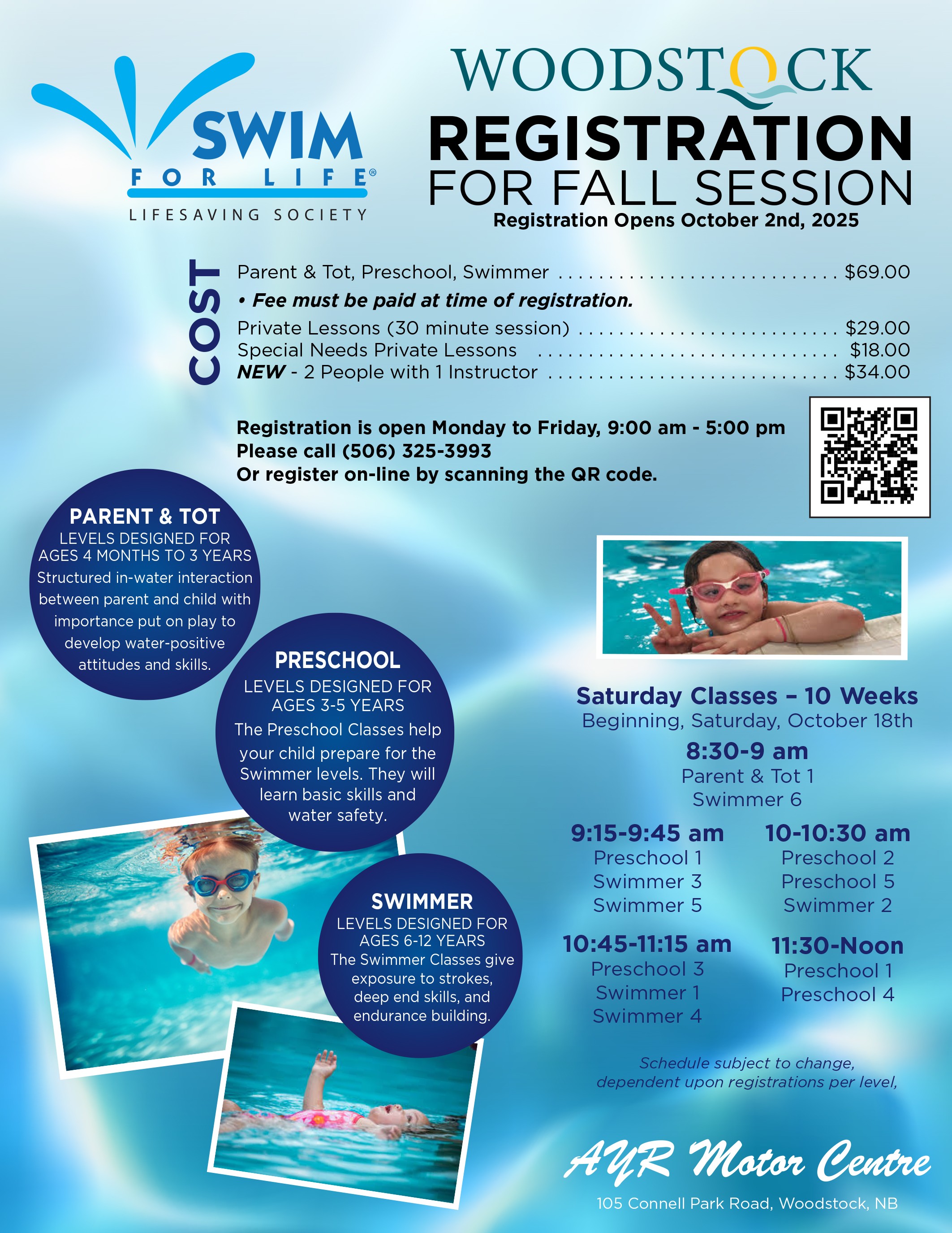 Join us in making waves and discovering the joy of swimming! For more information contact (506) 325-4302 or email AquaticSupervisor@woodstocknb.ca